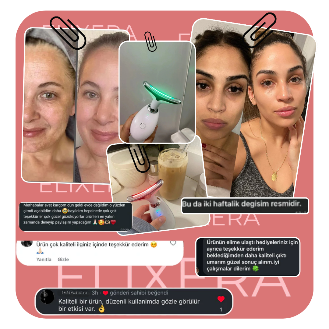 - EMS + LED + ısı masajı tek cihazda birleşir; cildi daha sıkı ve canlı göstermeye yardımcı olur.